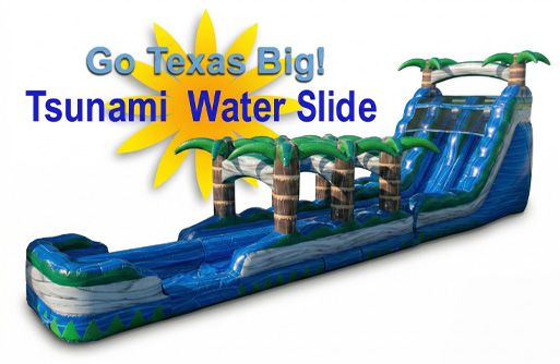 Ride the Tsunami all the way down! The 54ft Tsunami Water Slide is commercial-grade for extra durability, has a fun wave theme kids love, and is sure make your party, festival or event awesome this summer.